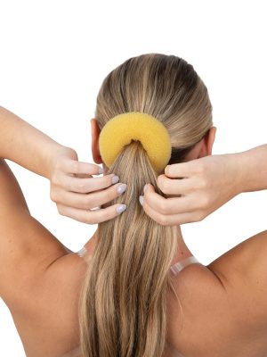The Bun Builder will help you build a recital-worthy bun in 3 easy steps: 1. Pull hair into ponytail with elastic band 2. Pull ponytail through the center of the builder and slide to the base of the ponytail 3. Arrange hair around the builder and fasten with hair pins