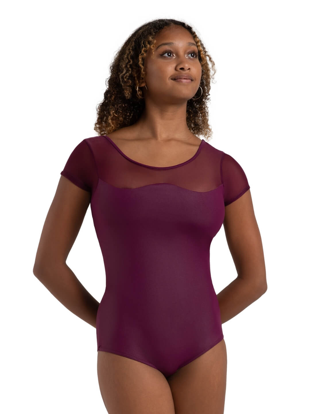 - Mesh cap sleeve leotard
