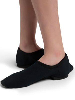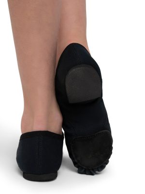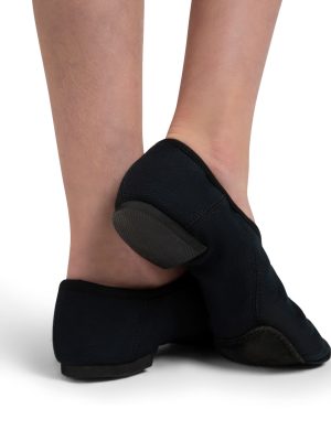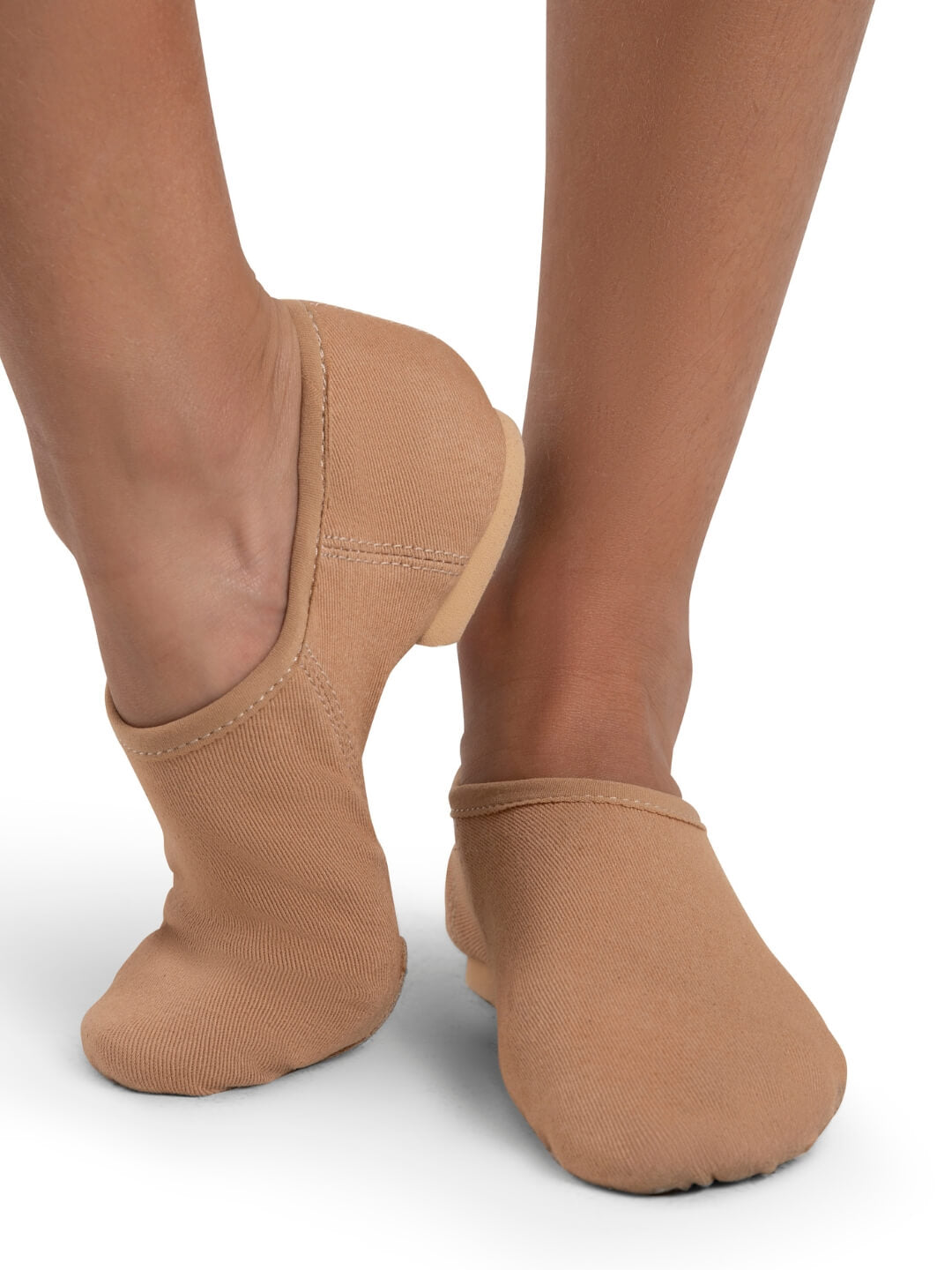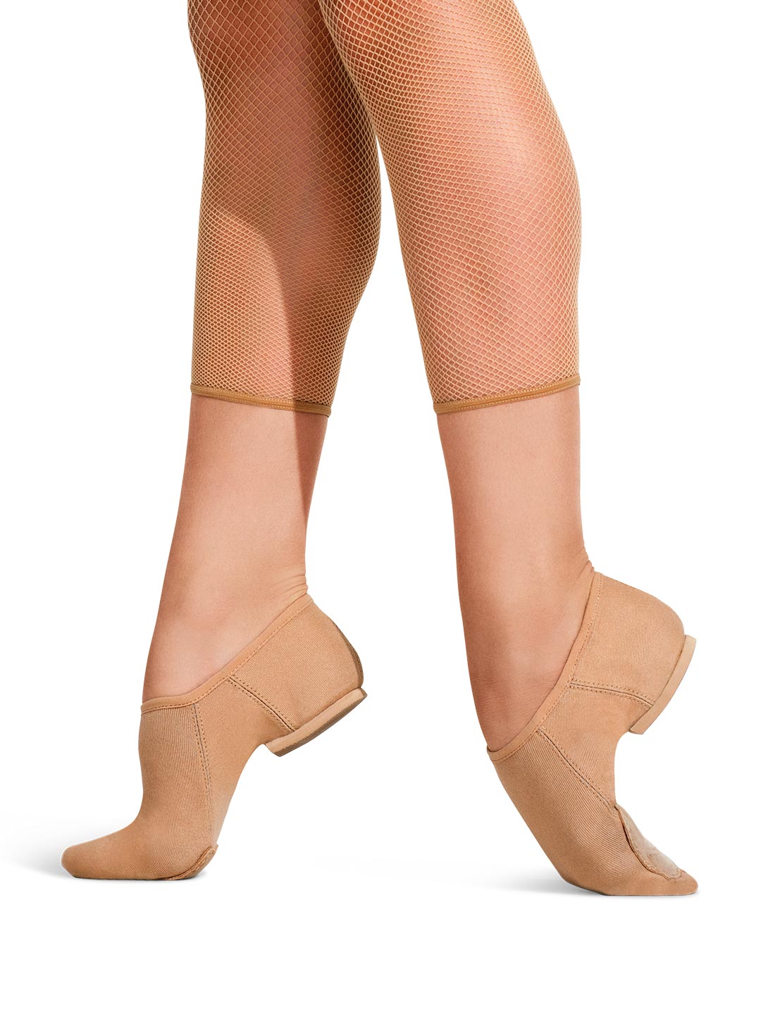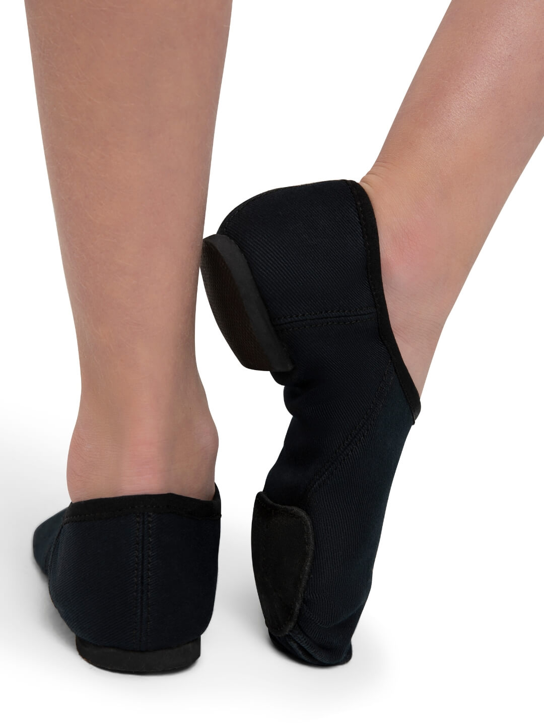Upcoming dancers move with satisfaction in our EOS Jazz Shoe. This slip-on jazz shoe made of four-way stretch canvas is a top-notch choice for dancers with narrow feet. Highlights include the second skin fit. shock absorbing EVA heel and sturdy fore foot patch for traction. Your favorite dancer doesn’t have to sacrifice comfort for style in the EOS.