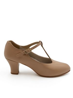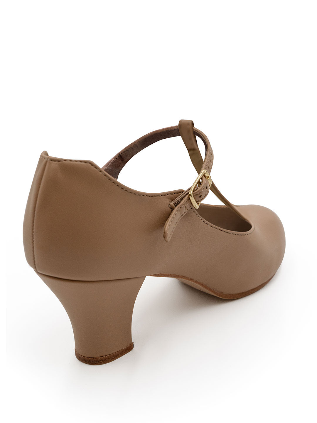 Elevate your performance in the Jr. Footlight T-Strap Character Shoe. Features a non-slip heel with leather top lift that creates balance and a greater strike zone. Soft microfiber lining is moisture wicking and the foam padded footbed ensures extra comfort. Slim buckle closure eliminates the worry of the character shoe slipping off during vigorous routines.