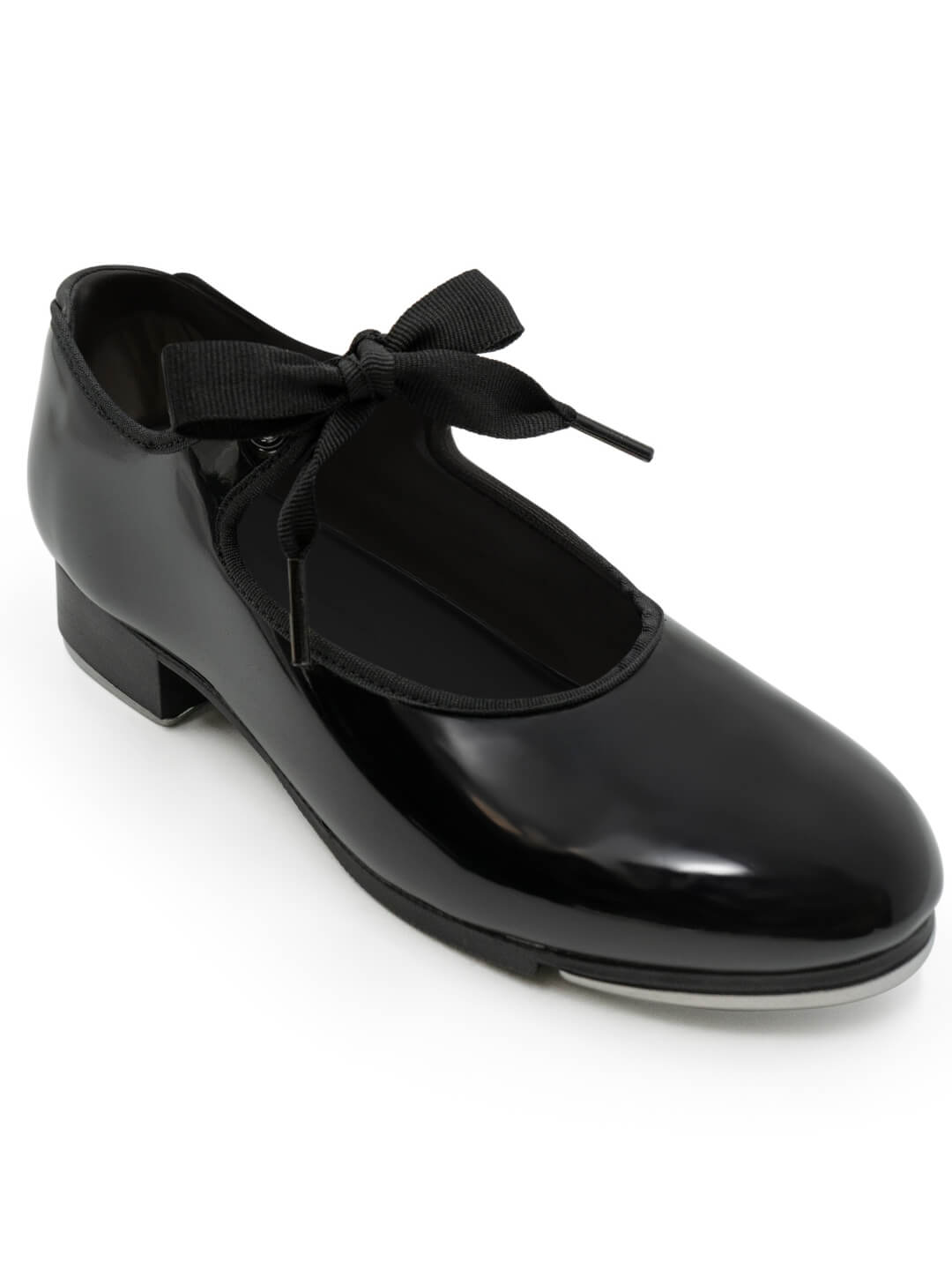 The Jr. Tyette tap shoe is the number one choice for an introductory tapper. Comes in shiny black patent. Features foam padded footbed. collar and Achilles notch for added comfort and security. Tap with absolute confidence in the Jr. Tyette.