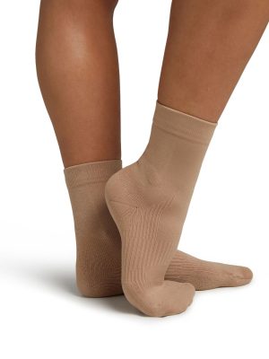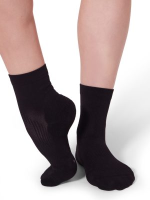 Lifeknit™ Sox are seamlessly engineered for movement. Ideal for dance. training. and recovery. this ankle sock prioritizes comfort. support. and compression. Strategically placed compression points within the sock reinforce and lift. while the durable cushioning absorbs shock to improve performance. Wicking yarn enhances moisture ventilation and overall breathability. Our Lifeknit Sock prevents odor and bacteria while distributing body heat for all day comfort. The soft base also creates a second skin feel that fits along the arch of the foot like no other. Slip-free traction at the ball of the foot and other critical contact points for maximum foot-to-floor grip.