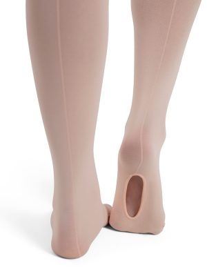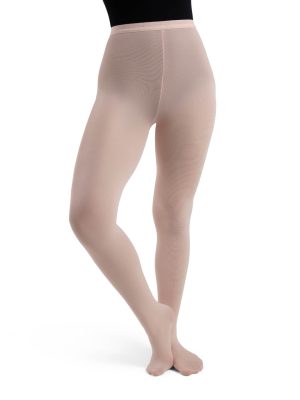 The Professional Mesh Transition Tight is designed for classical dance and features a lightweight pique fabric for traditional texture. A mock back seam elongates the leg line and lends itself to a professional. polished look. These soft-knit. semi-opaque tights have an elastic waistband to hold them tight in place during any routine. Stitched hole on the sole of the foot to transition from footed to footless. Ideal for ballet competitions and stage performances. Available in both adult and child sizes.