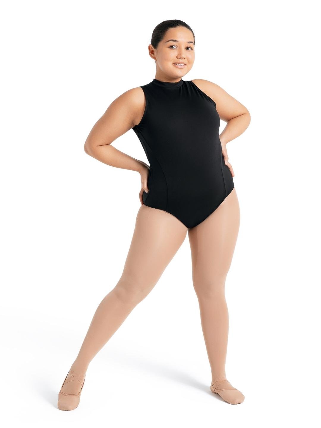 Turn heads in and out of the studio in the High Neck Leotard. Made with our Tactel® fabric. this mock turtleneck with snap closure will give you a sophisticated look with a secure feel. Princess seams for a tailored fit with an open back that highlights key back muscles. Perfect for class. performances. and auditions. Pair with your favorite skirt or bottoms to complete your custom look. Available in both adult and child sizes.