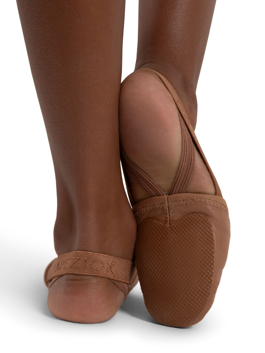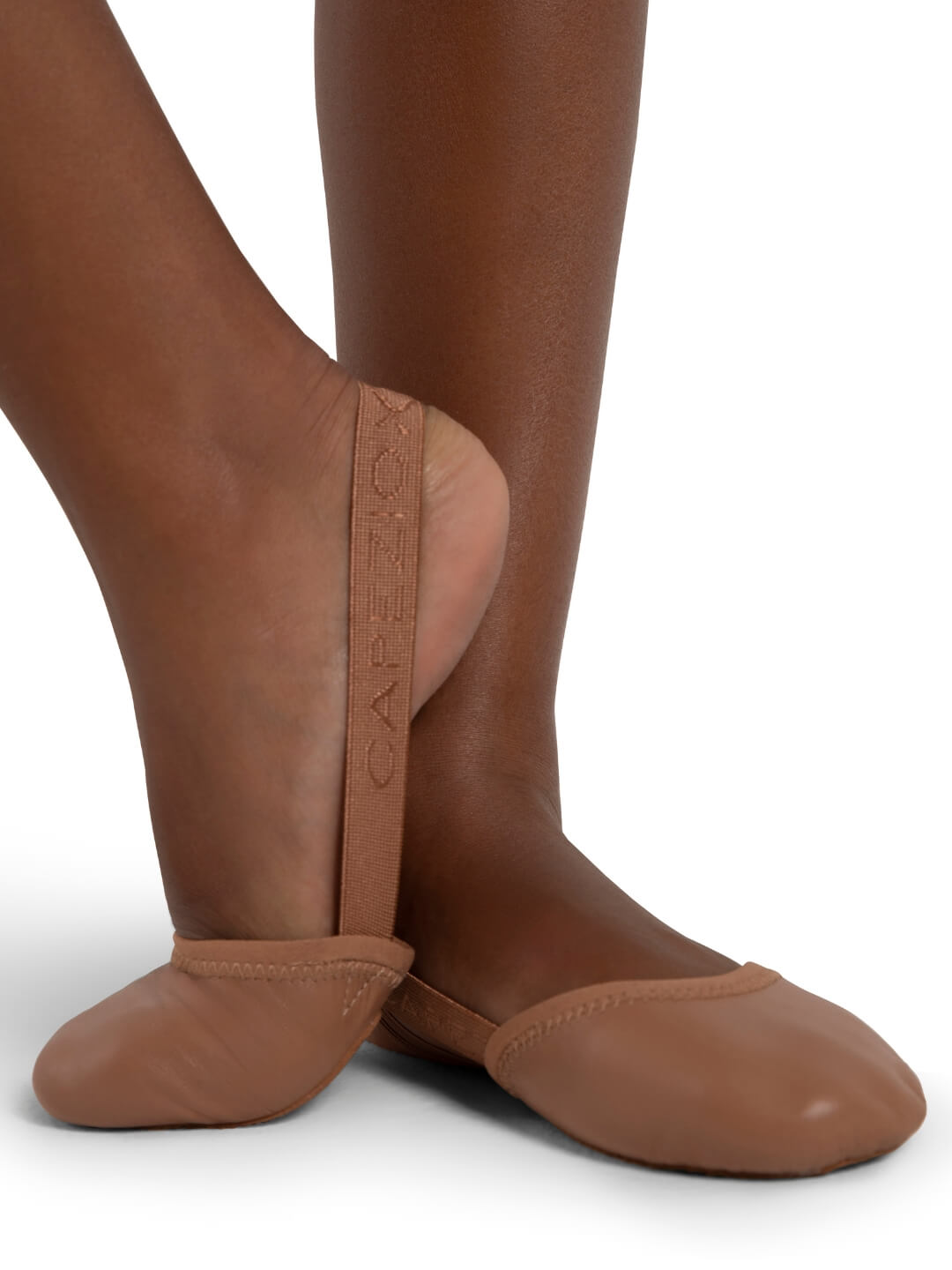 The Turning Pointe 55 is the ideal turning shoe. More ideal features include a round toe box and wide sole patch for maximum floor coverage. Elasticized binding around the sides and arch of the foot add stability while turning.