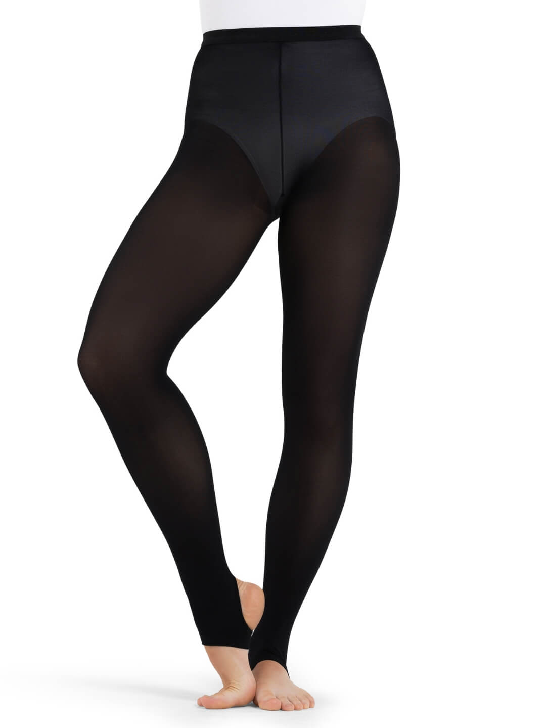 Supreme hold for your toughest routines. the Ultra Hold Stirrup Tight provides superior support for long-lasting wear. From studio to stage. this matte. semi-opaque tight offers durable. subtle compression and features an elastic waistband that will stay in place all day. Dyed-to-match gusset for freedom of movement. Available in both adult and child sizes.